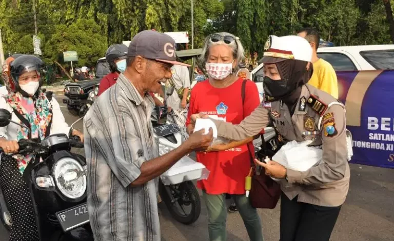 Pembagian takjil dan makanan minum buka puasa ini, dipimpin langsung oleh Kasat Lantas AKP Anindita Harcahyaningdyah, S.I.K didampingi Ketua Komunitas Warga Tionghoa Linda Indrawati.