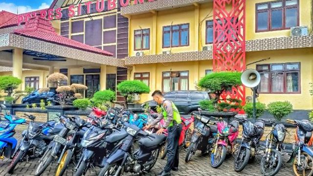 Satuan Lalu Lintas Polres Situbondo mengamankan puluhan sepeda motor berknalpot brong saat razia balap liar.
