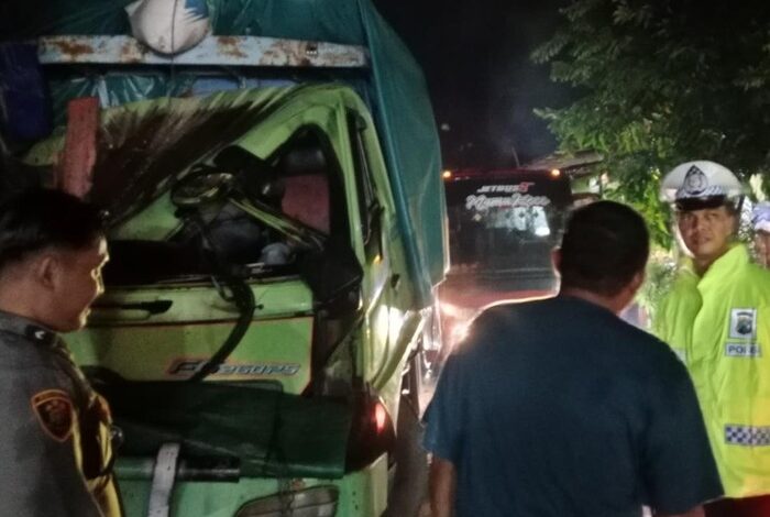Begitu sampai lokasi kejadian, truk yang dari arah timur itu tetiba oleng ke kiri atau ke arah berlawan. Lalu menyerempet truk nopol P 8029 UF yang melaju dari arah berlawanan.