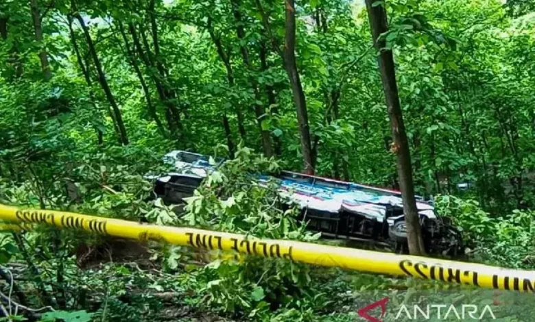 Satuan Lalu Lintas Polres Situbondo, Jawa Timur, menangani kecelakaan tunggal sebuah bus penumpang yang terjun ke jurang di jalur Arak-arak, perbatasan Situbondo-Bondowoso, Minggu (23/11/2025). Insiden ini mengakibatkan tujuh orang mengalami luka-luka.
